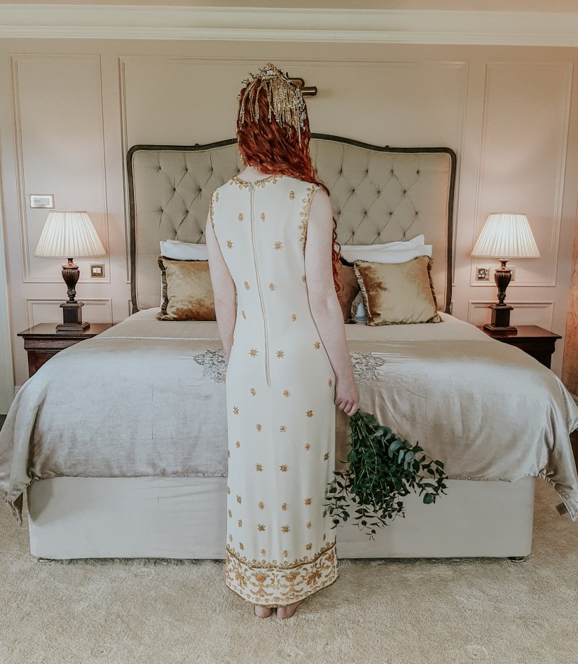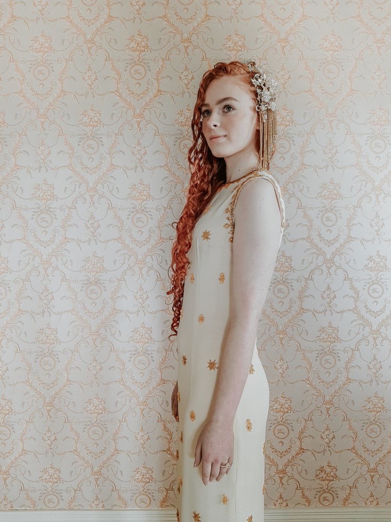 “Orla” is a 1960’s Larry Aldrich Dress . She was made in New York in the 60’s by this well known gown maker. She has the most alluring beading of golden hues, delicate design and exquisite detail.
